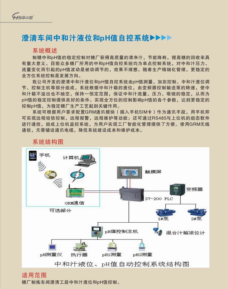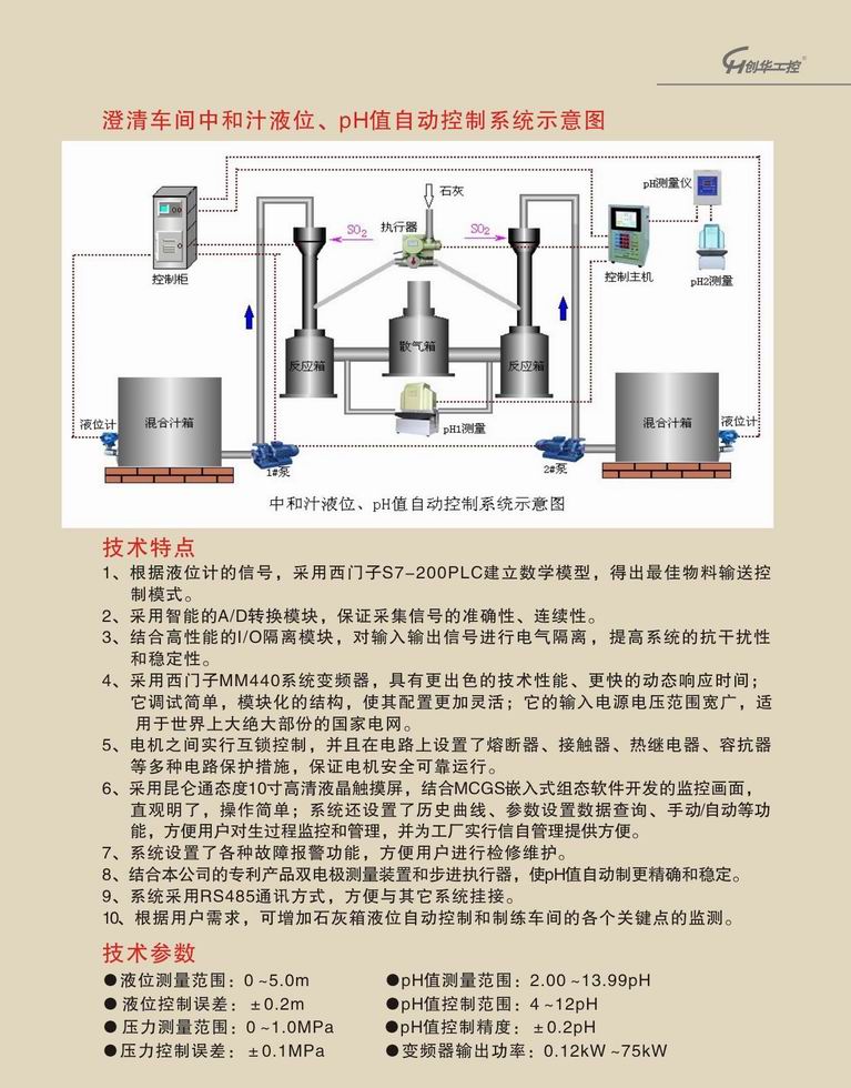 澄清車間中和汁液位和pH值自控系統(tǒng)