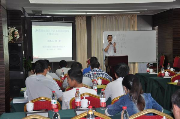 這次培訓(xùn)主要以創(chuàng)華工控pH自控系統(tǒng)系列產(chǎn)品為主,結(jié)合生產(chǎn)工藝,從理論到實(shí)際、系統(tǒng)結(jié)構(gòu)圖到實(shí)物,圍繞如何更好操作和維護(hù)設(shè)備展開講解,主要內(nèi)容有《玻璃電極的使用和維護(hù)》、《pH自控系統(tǒng)電路原理分析》、《pH自控系統(tǒng)故障分析和排除》等。培訓(xùn)還邀請(qǐng)了著名制糖專家—廣西大學(xué)食品工程學(xué)院周少基教授及糖廠pH自控系統(tǒng)第一人—華南理大學(xué)黃揚(yáng)明博士就《蔗汁澄清與控制》和《可靠性工程與產(chǎn)品研制》等方面內(nèi)容進(jìn)行了講解。